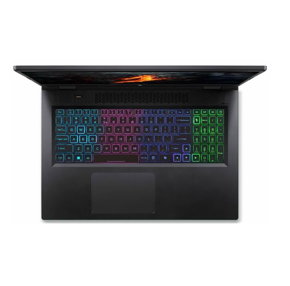 Hệ thống hai quạt tản nhiệt kép và khe gió lớn giúp máy luôn mát mẻ khi chiến game hoặc render nặng. Thiết kế Nitro đặc trưng với dải LED RGB, phím WASD nổi bật và khung máy cứng cáp, thể hiện đậm chất gaming.