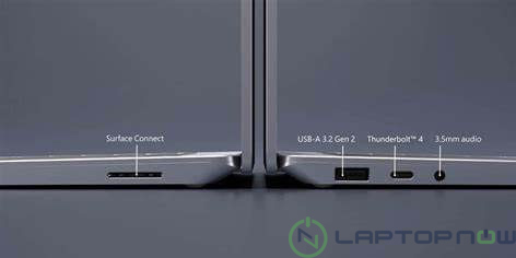 Một trong những thay đổi lớn khác trên Surface Laptop 5 là cổng USB 4.0/Thunderbolt 4 mới, giúp tăng băng thông để truyền dữ liệu hoặc gửi video tới màn hình ngoài. Đáng buồn thay, trên cả hai model 13,5 và 15 inch, chỉ có tổng cộng hai đầu nối USB: cổng Thunderbolt 4 nói trên và khe cắm USB 3.1 Type-A thông thường. Rất may, Microsoft chưa ngừng hỗ trợ âm thanh có dây, vì vậy bạn vẫn nhận được giắc cắm tai nghe 3,5 mm cùng với cổng Surface Connect từ tính đặc trưng của công ty để sạc và lắp ghép.