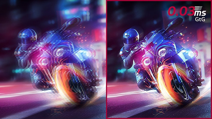 Với thời gian phản hồi 0,03ms (GtG), giảm hiện tượng bóng mờ ngược và giúp các vật thể được hiển thị rõ ràng, cho phép bạn thưởng thức trò chơi với chuyển động mượt mà hơn và chuyển động hình ảnh siêu thực.