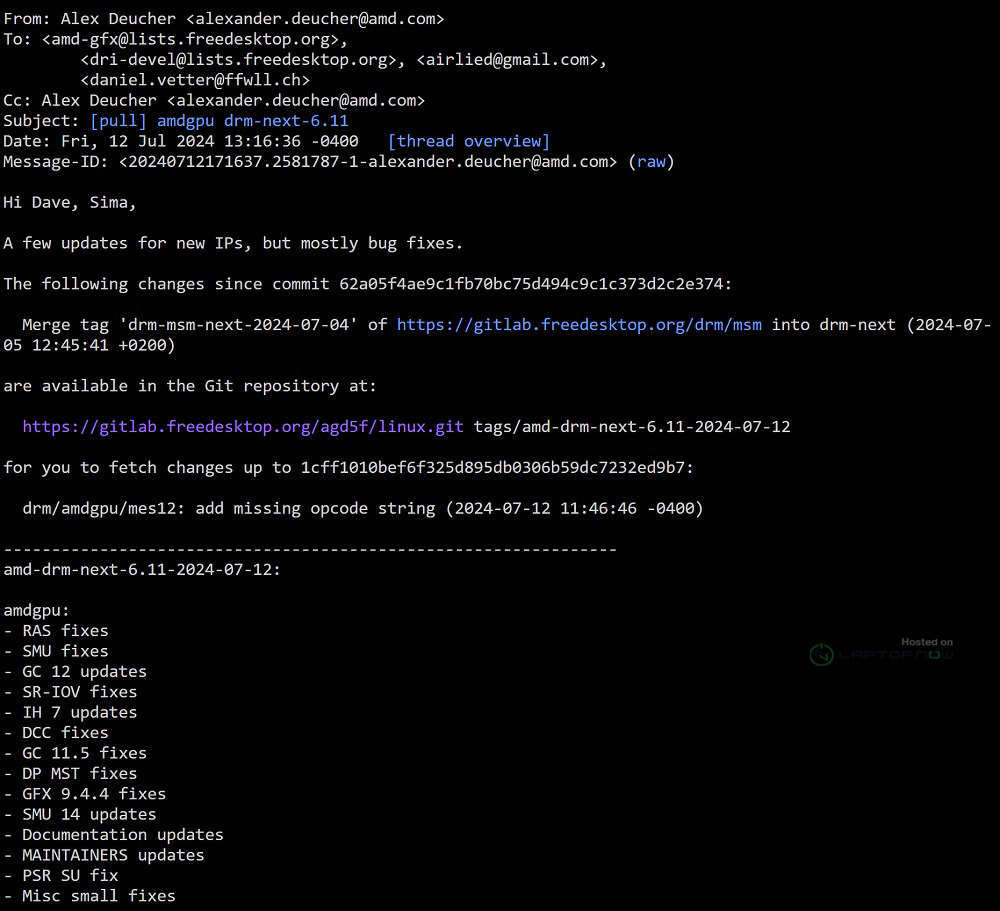 Phoronix báo cáo rằng AMD đã gửi các bản vá RDNA 4 cuối cùng trước khi Linux 6.11 ra mắt, với yêu cầu kéo bao gồm các bản vá sửa lỗi xung quanh các khối IP GFX12.