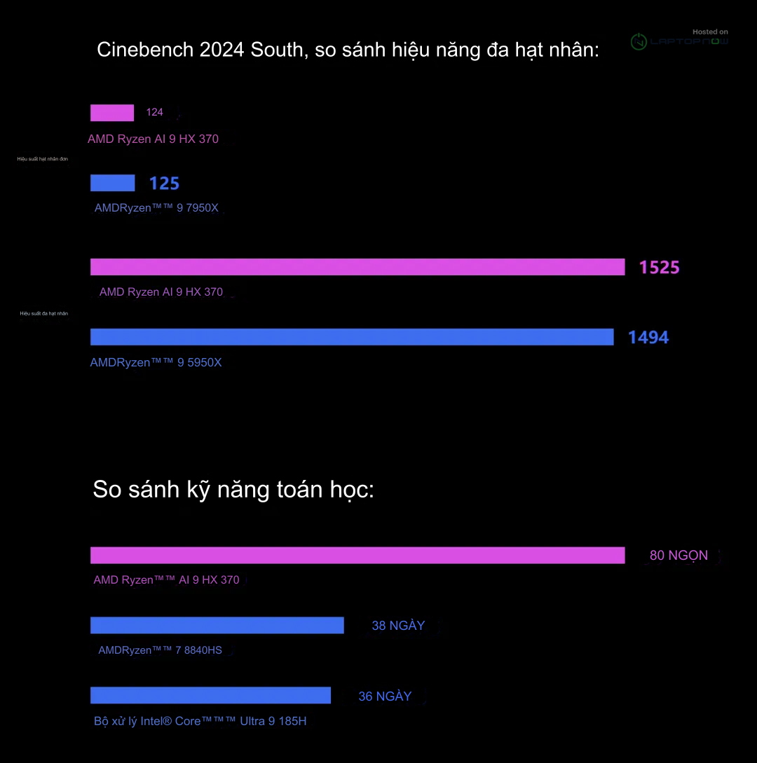 AMD Ryzen AI 9 HX 370 có hiệu suất ngang bằng Ryzen 9 7950X trong bài kiểm tra Cinebench 2024