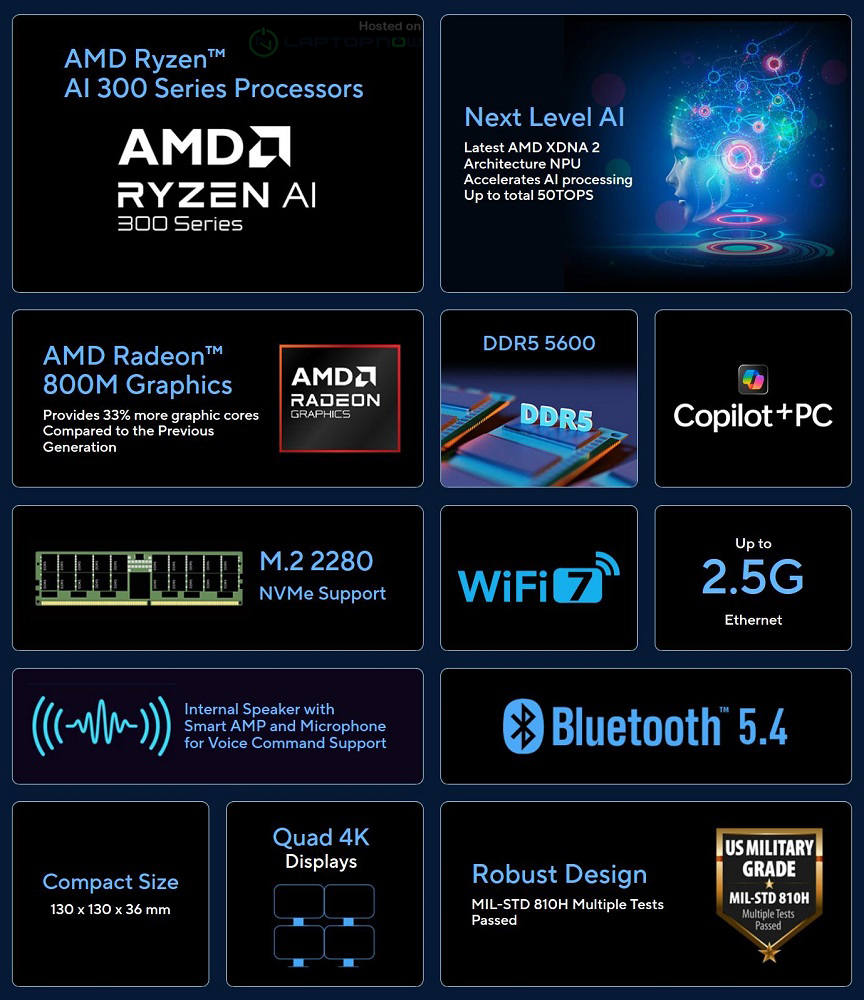 Mini-PC này có hai khe SODIMM, hỗ trợ các mô-đun DDR5-5600 với dung lượng lên đến 64 GB. ExpertCenter PN54 được trang bị 2 khe SSD M.2 2280 PCIe Gen4x4, mang lại không gian rộng rãi để người dùng gắn các ổ lưu trữ. Đặc biệt, đây là một trong những mini-PC hiếm hoi trên thị trường hỗ trợ chương trình Copilot+ PC của Microsoft, không chỉ vì thiết bị có một nút Copilot chuyên dụng ở phía trước, mà còn vì với NPU XDNA 2 tích hợp, AI biên sẽ hoạt động mượt mà.