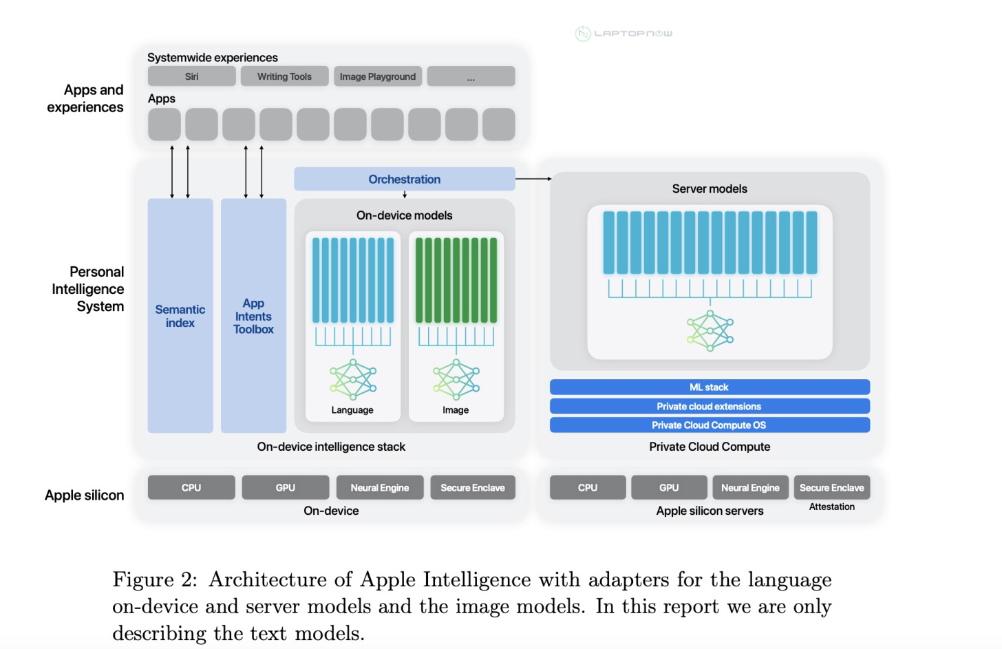 Tuy nhiên, Apple cho biết mô hình Apple Foundation Model (AFM) với 2,73 tỷ tham số của họ dựa vào các cụm xử lý tensor unit (TPU) v4 và v5p thường được cung cấp bởi Google thuộc tập đoàn Alphabet Inc.