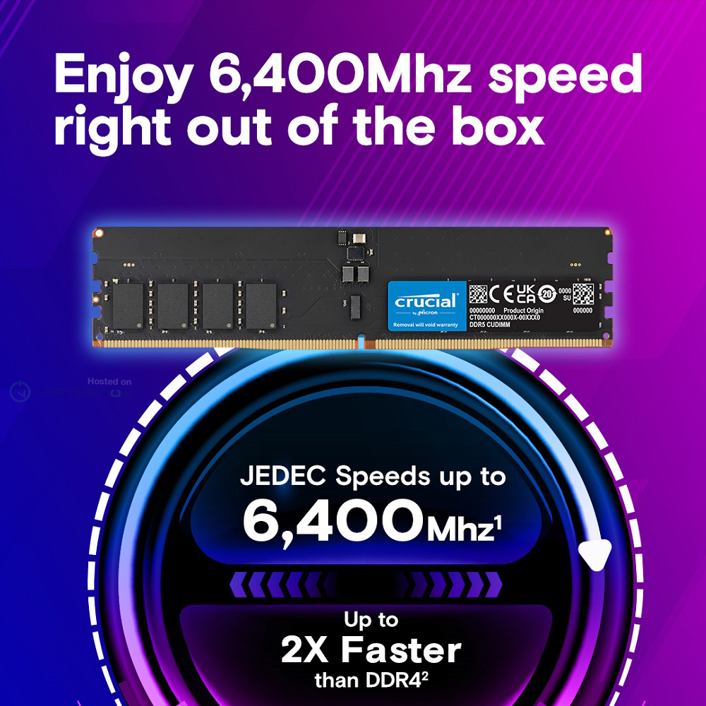 Crucial sẽ tung ra phiên bản đầu tiên của bộ nhớ DDR5 CUDIMM dựa trên các mô-đun 16 GB. Các mô-đun này có thể được mua riêng lẻ hoặc trong bộ kit 32 GB. Các mô-đun được trang bị driver đồng hồ, được tối ưu hóa để cung cấp tốc độ nhanh hơn 15% so với các mô-đun DRAM không có driver đồng hồ, với tốc độ lên tới 6400 MT/s ngay khi xuất xưởng. Bộ nhớ sẽ có sẵn cả ở dạng CUDIMM và CSODIMM cho máy tính để bàn và laptop.