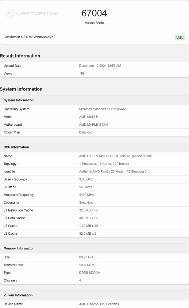 APU Strix Halo cao cấp của AMD, Ryzen AI MAX+ PRO 395, đã được phát hiện trên Geekbench với 16 nhân và iGPU Radeon 8060S.