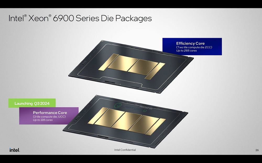 Intel đang ra mắt trước dòng vi xử lý cao cấp Xeon 6900P "Granite Rapids-AP" để cạnh tranh với dòng vi xử lý Turin sắp tới của AMD, dự kiến ra mắt trong nửa cuối năm 2024. Cả hai dòng vi xử lý này đều có điểm chung là số lượng lõi tối đa lên đến 128 lõi. Khác với dòng Xeon 6E dựa trên E-Cores, các vi xử lý Xeon 6P sẽ sử dụng kiến trúc lõi Redwood Cove. Các lõi P mới này sẽ cạnh tranh trực tiếp với kiến trúc lõi Zen 5 của AMD trên dòng Turin.