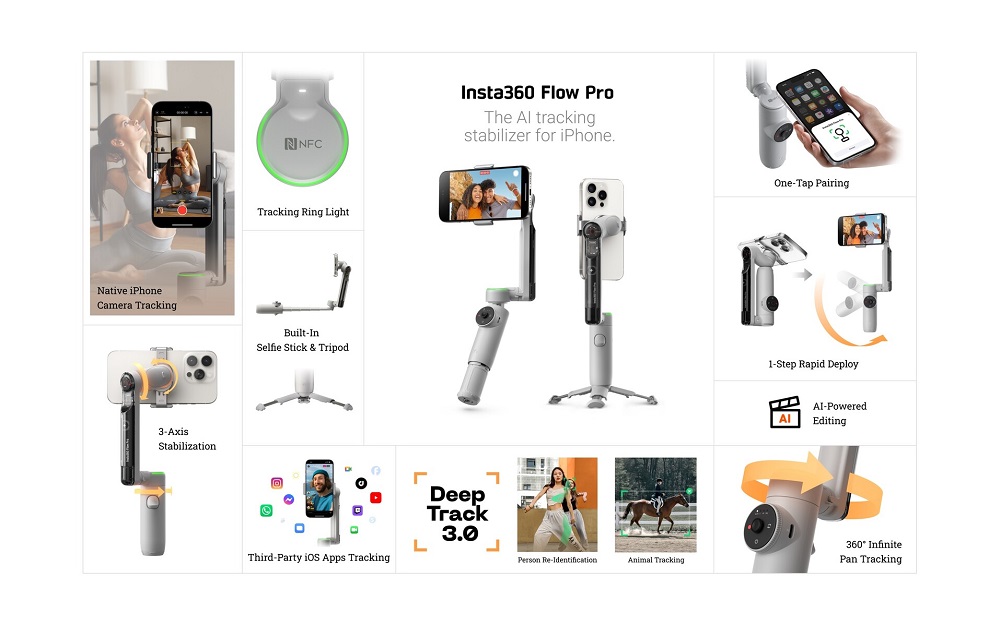 Insta360 Flow Pro: gimbal AI tracking đầu tiên hỗ trợ camera iPhone ra mắt