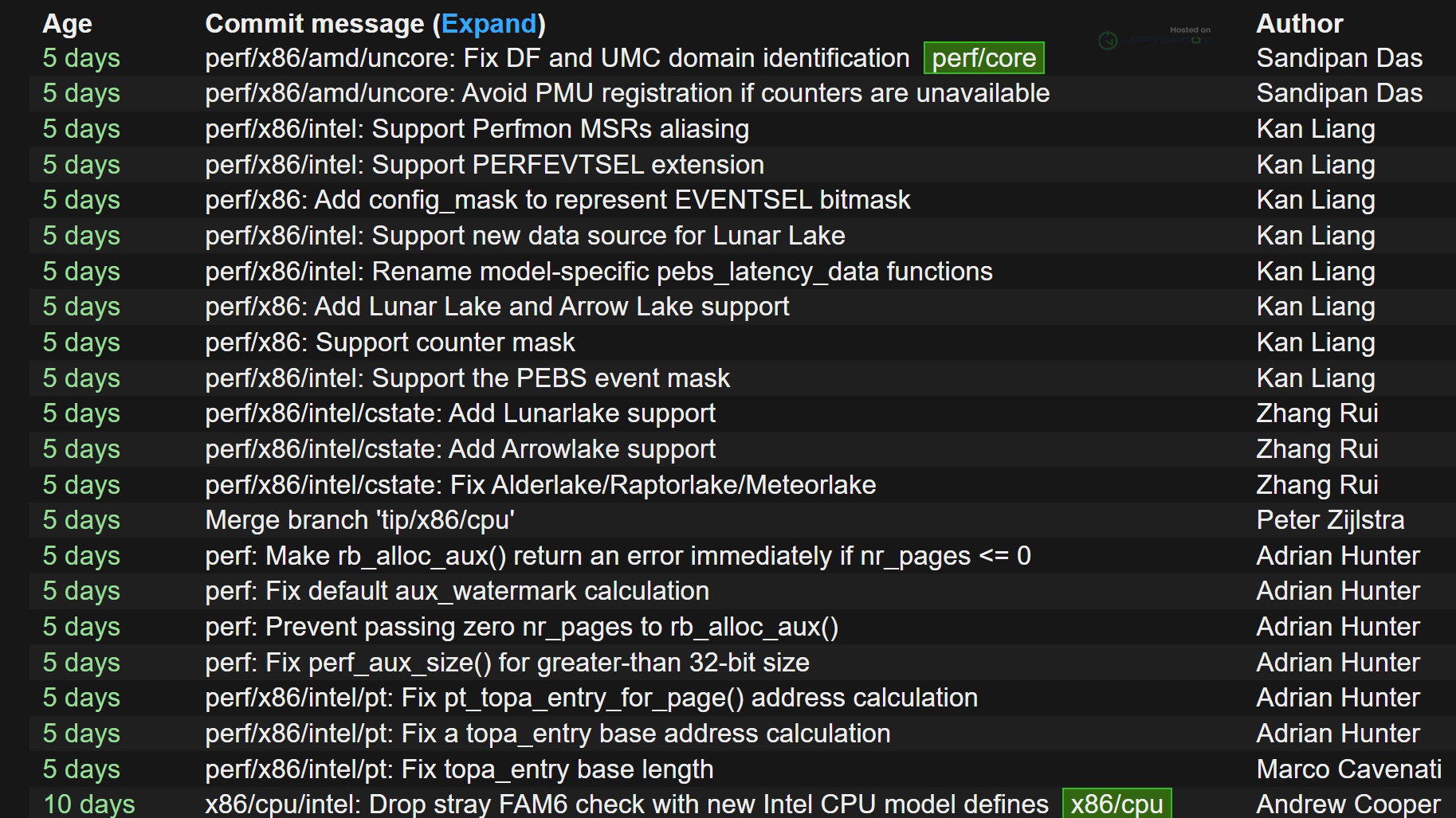 Phoronix báo cáo rằng Team Blue đã bắt đầu làm việc trên hệ thống perf trong nhân Linux, một phần được thiết lập cho khả năng giám sát. Với Linux 6.11, Intel đã thêm "các bit cụ thể cho mô hình" cho các thế hệ sắp tới, đã được hợp nhất vào nhánh Git. Dựa trên những lần vá được đề xuất, đơn vị giám sát hiệu suất cho đơn vị giám sát hiệu suất khá tương đồng với thế hệ Meteor Lake trước đó, với một số điều chỉnh.