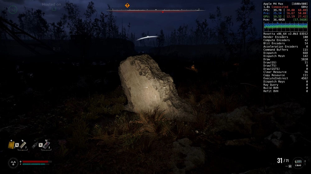 Denis Gladkikh cho thấy có thể chạy STALKER 2 trên Apple Silicon bằng cách sử dụng ứng dụng CrossOver và các tệp GPT2 để khởi chạy game trên M4 Max. Lưu ý rằng game không chạy trực tiếp trên nền tảng này, vì vậy cần phải sử dụng phương pháp giả lập, dẫn đến hiệu suất không thể đạt tối đa.