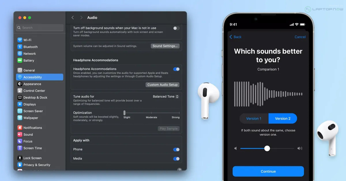 Từ iOS 14 trở đi, người dùng iPhone và iPad có thể tùy chỉnh trải nghiệm của mình với AirPods và tai nghe Beats bằng tính năng Headphone Accommodations, giúp tăng âm thanh nhẹ và điều chỉnh một số tần số theo nhu cầu thính giác của người dùng. Với macOS Sequoia, Apple cuối cùng đã mang tính năng này đến với Mac.