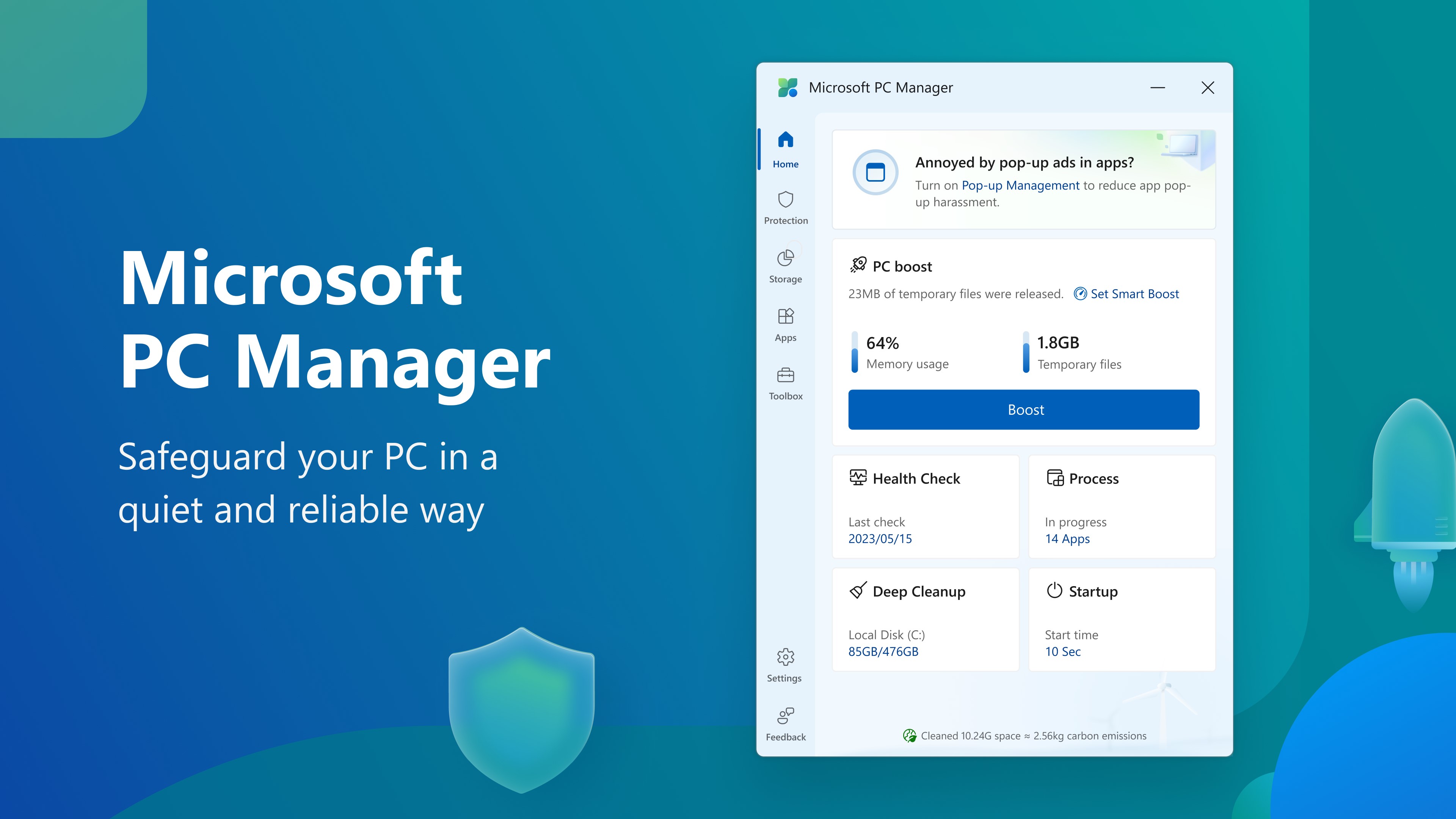 PC Manager thuộc danh mục “trình tối ưu hóa hệ thống” giống như Razer Cortex Game Booster. Nó dọn sạch các tập tin tạm thời, giải phóng bộ nhớ không được sử dụng và “đào sâu” vào ổ cứng của bạn để dọn sạch các tập tin không sử dụng.