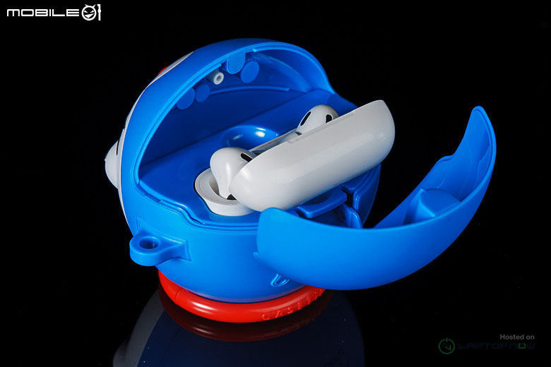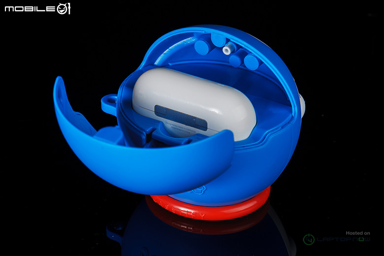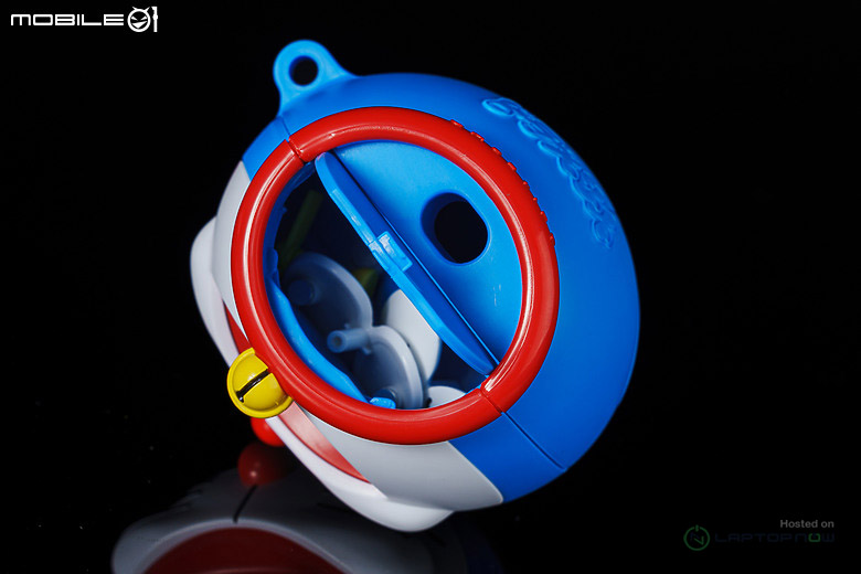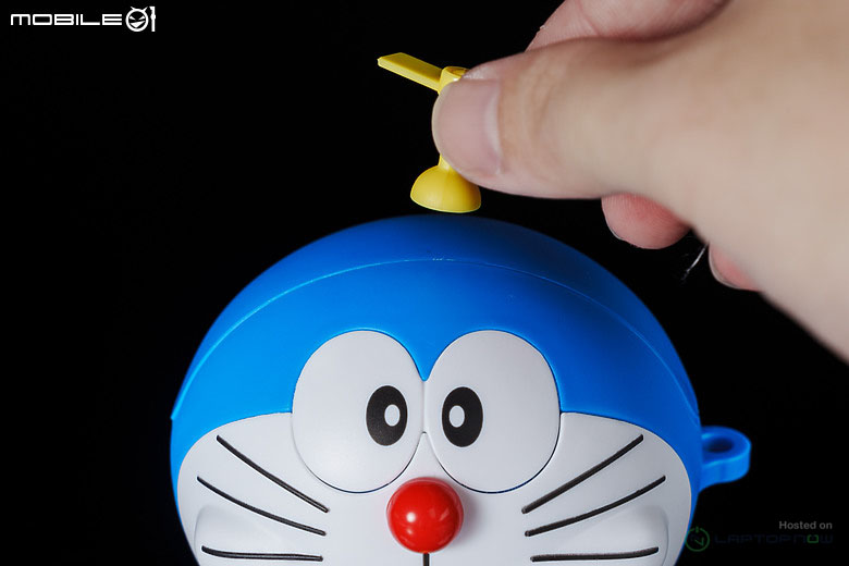 Vì thân của Doremon có hình tròn và vì lý do trọng lượng nên sẽ có 1 không gian rỗng được sử dụng ở đây, do đó bạn cần phải đặt AirPods Pro vào một rãnh khác, và khi mở đầu ra thì không thể mở đồng thời nắp trên của tai nghe, thật đáng tiếc.