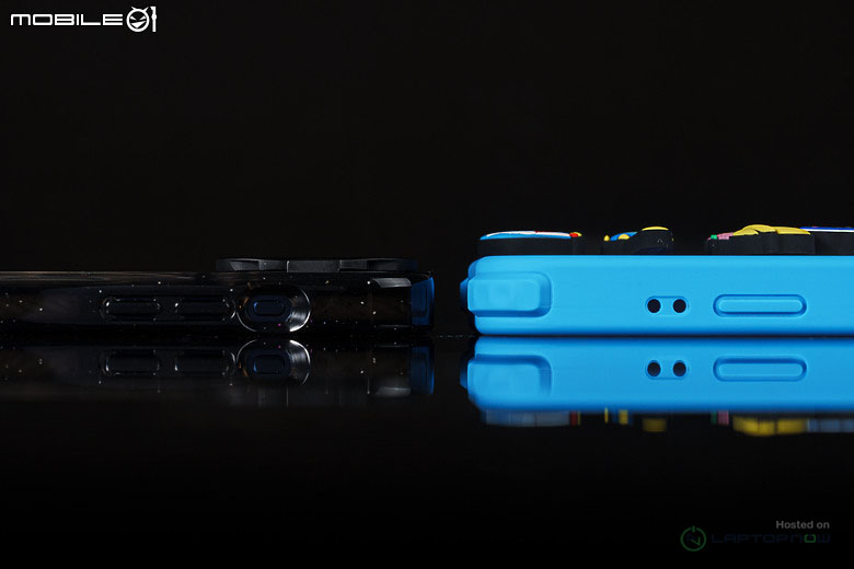 Ở đây chúng tôi cũng so sánh tính năng chống shock của ốp điện thoại Push-In vừa được giới thiệu. Điểm khác biệt lớn nhất giữa hai chiếc ốp điện thoại là Push-In có thiết kế khung cao hơn và bốn cạnh cũng có phần nhô ra. Các góc của điện thoại có cơ chế đệm.