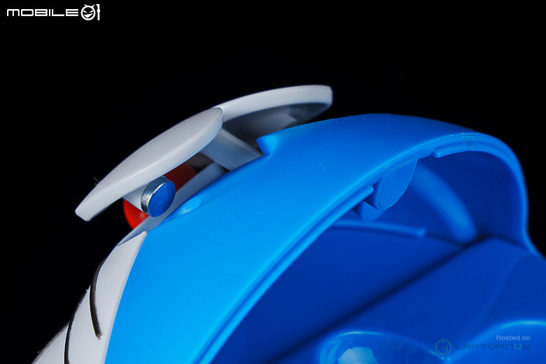 Đối với phần trước của đầu, bạn có thể thấy những phần nhô ra nhỏ của phụ kiện mắt. Bằng cách đẩy về phía trước, bạn có thể loại bỏ và thay thế các biểu cảm mắt khác nhau.