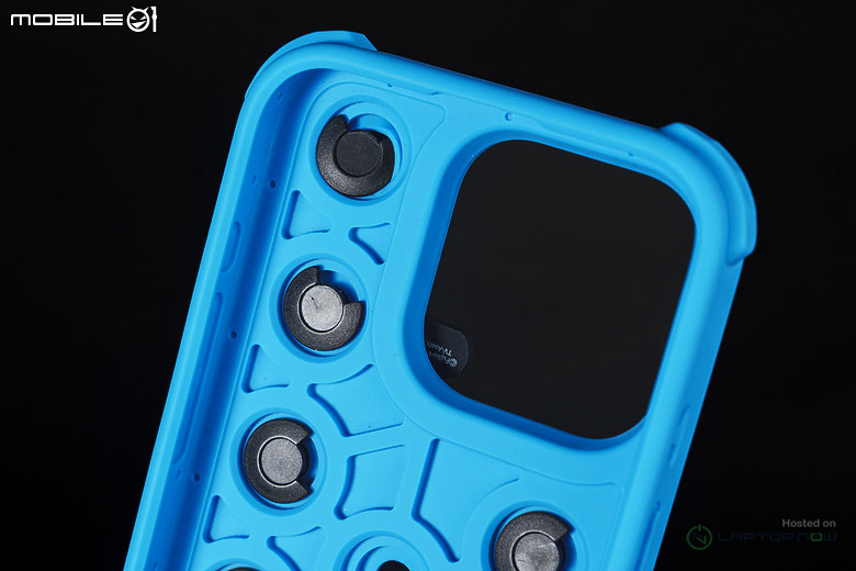Nhìn từ bên trong ốp lưng, bạn có thể thấy phần lõm của khóa và gắn các phụ kiện một cách dễ dàng.