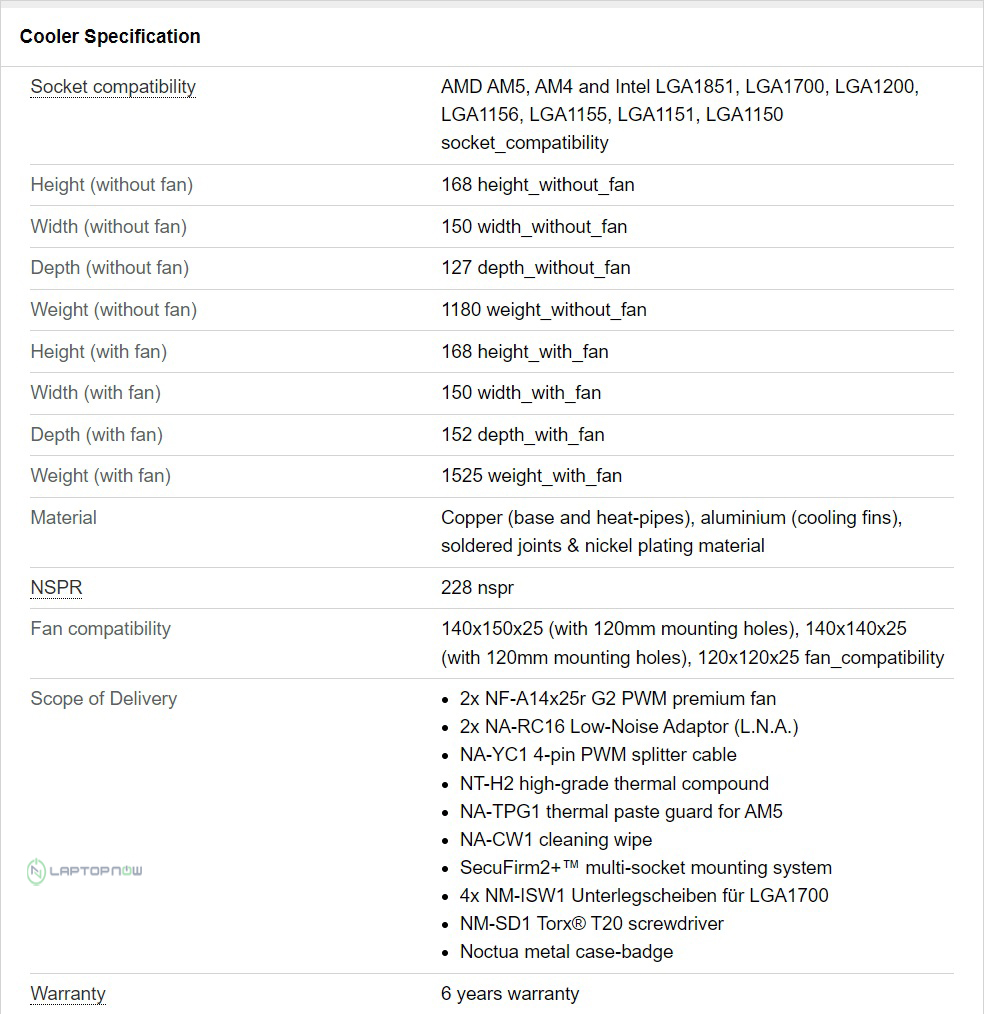 NH-D15 G2 đã được cải tiến một cách kỹ lưỡng từ tất cả các mặt từ tản nhiệt và quạt đến lắp đặt, chất dẫn nhiệt và gói phụ kiện. Được bảo hành từ nhà sản xuất tin cậy Noctua trong 6 năm, đây là sự lựa chọn số một mới dành cho khách hàng đòi hỏi sự tối ưu nhất trong làm mát bằng không khí.