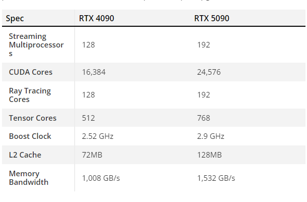 Thông số kỹ thuật RTX 4090 RTX 5090