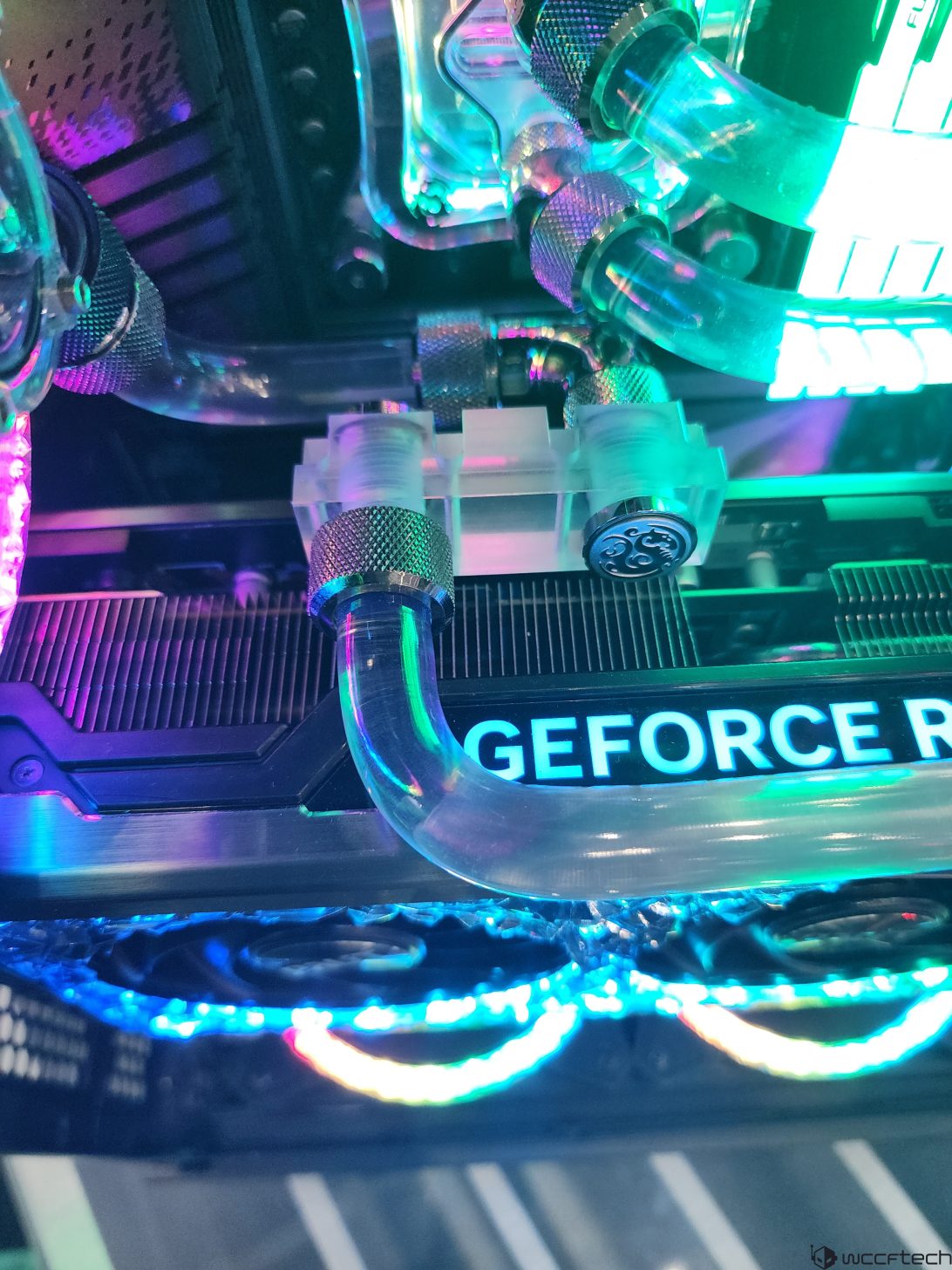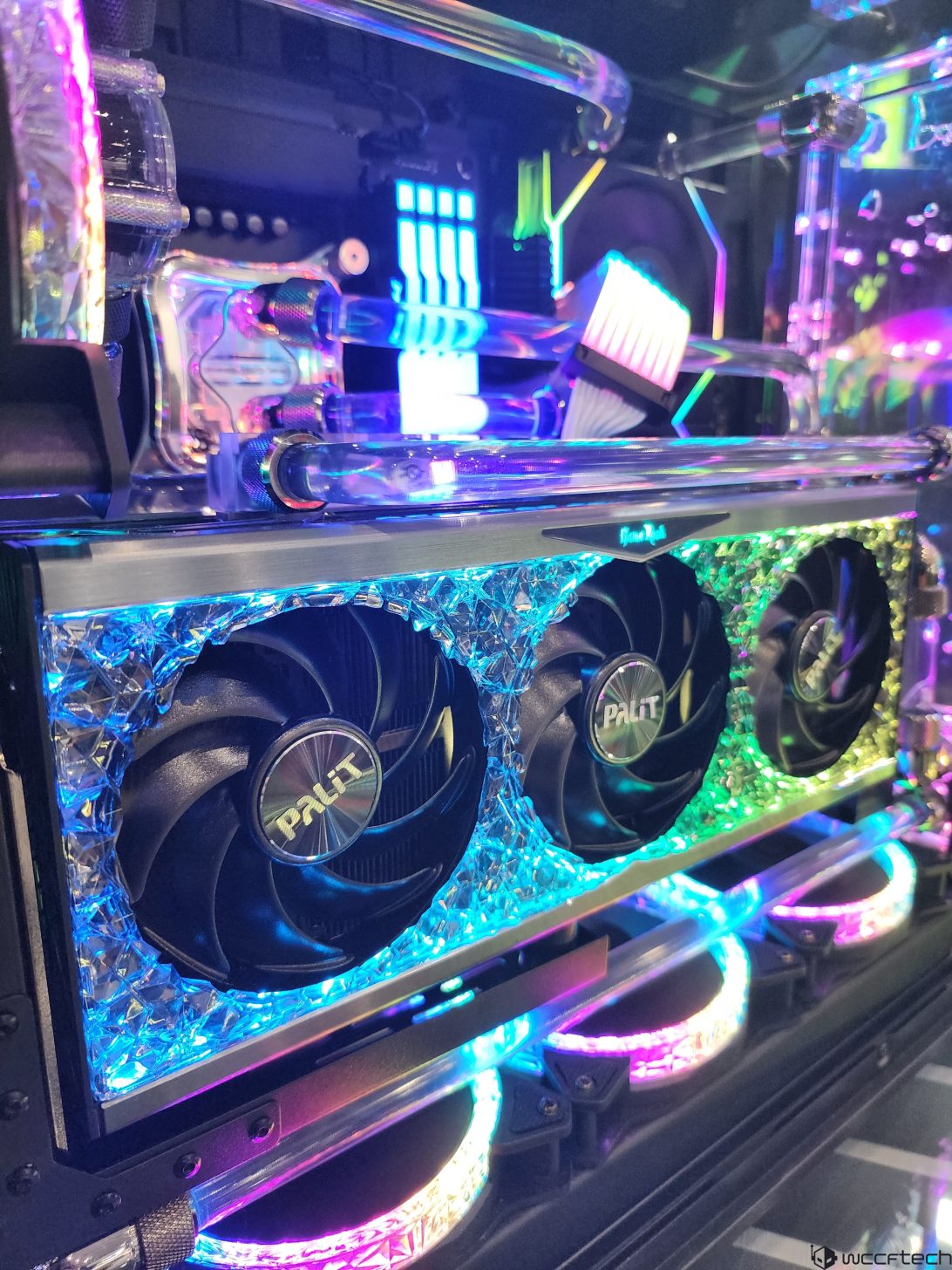 Tiếp theo, Palit hợp tác với Bitspower, cả hai công ty đều đang tích hợp giải pháp làm mát bằng không khí và chất lỏng “lai” trong model GeForce RTX 4090 Neptunus hoàn toàn mới, đi kèm với tấm đế bằng đồng AquaFusion đã được cấp bằng sáng chế và giảm nhiệt độ hơn 10% (Celcius). Vì nó được làm mát bằng không khí nên không giảm hiệu suất nhiệt trong các tình huống khắc nghiệt. Card sử dụng giải pháp ống vòng kín tiêu chuẩn và bản thân thiết kế có 3 khe cắm với kết cấu đèn RGB tinh thể ở mặt trước trông rất đẹp.