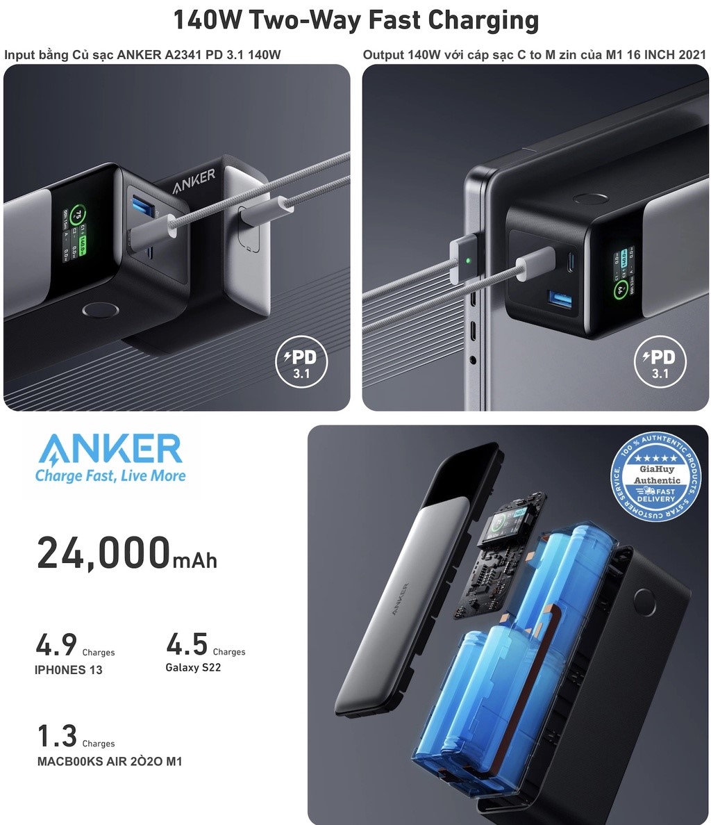 Một số điểm nổi bật của Anker 737 Power Bank bao gồm: