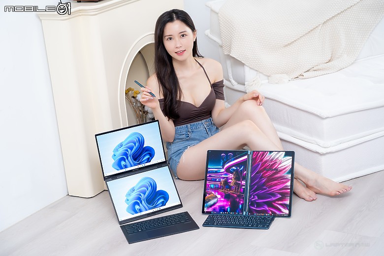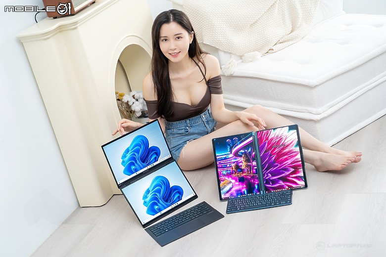 So sánh ASUS Zenbook Duo và Lenovo Yoga Book 9i bên cạnh người đẹp công nghệ